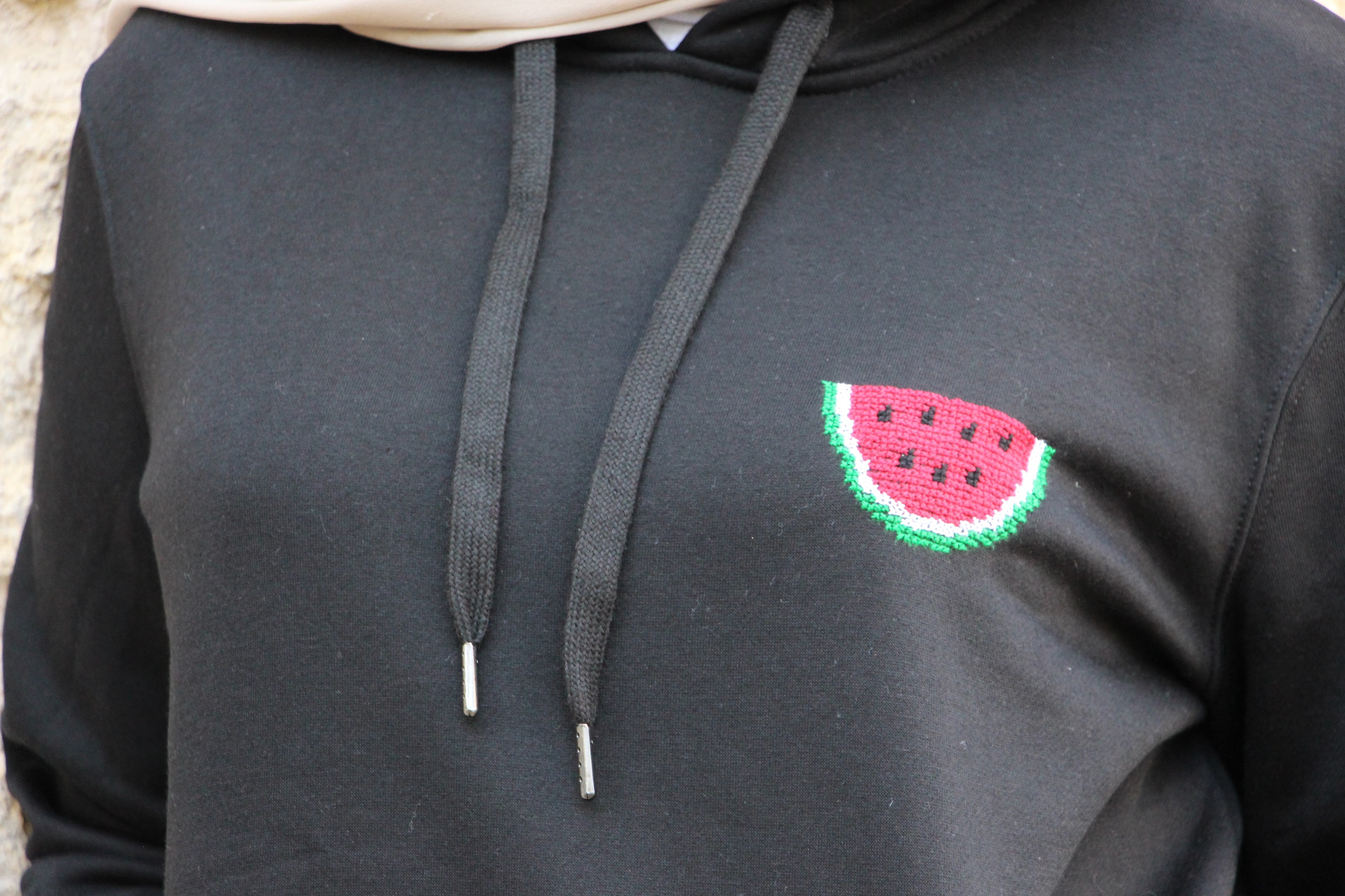 Enjoy wearing a stylish black hoodie featuring handmade watermelon embroidery, adding a playful and artistic touch to your outfit. Available in multiple sizes: Small, Medium, Large, XL, to suit everyone.