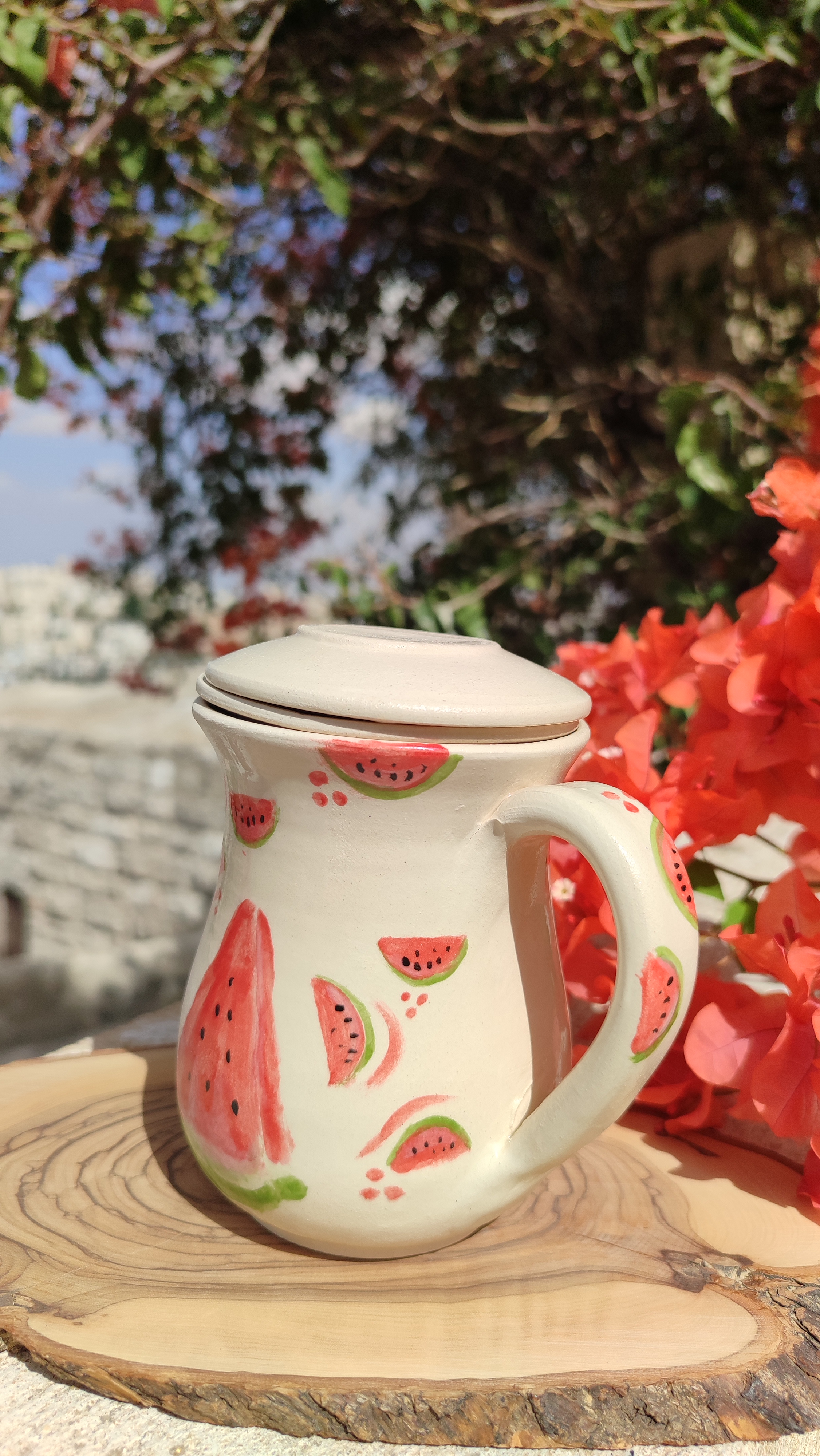 This ceramic mug set is thoughtfully designed to offer a complete tea experience. The handmade craftsmanship gives each piece a unique character, while the watermelon design adds a playful and contemporary feel. The infuser allows easy brewing of loose herbs, and the cleverly designed lid serves as a resting plate to keep things clean after use.