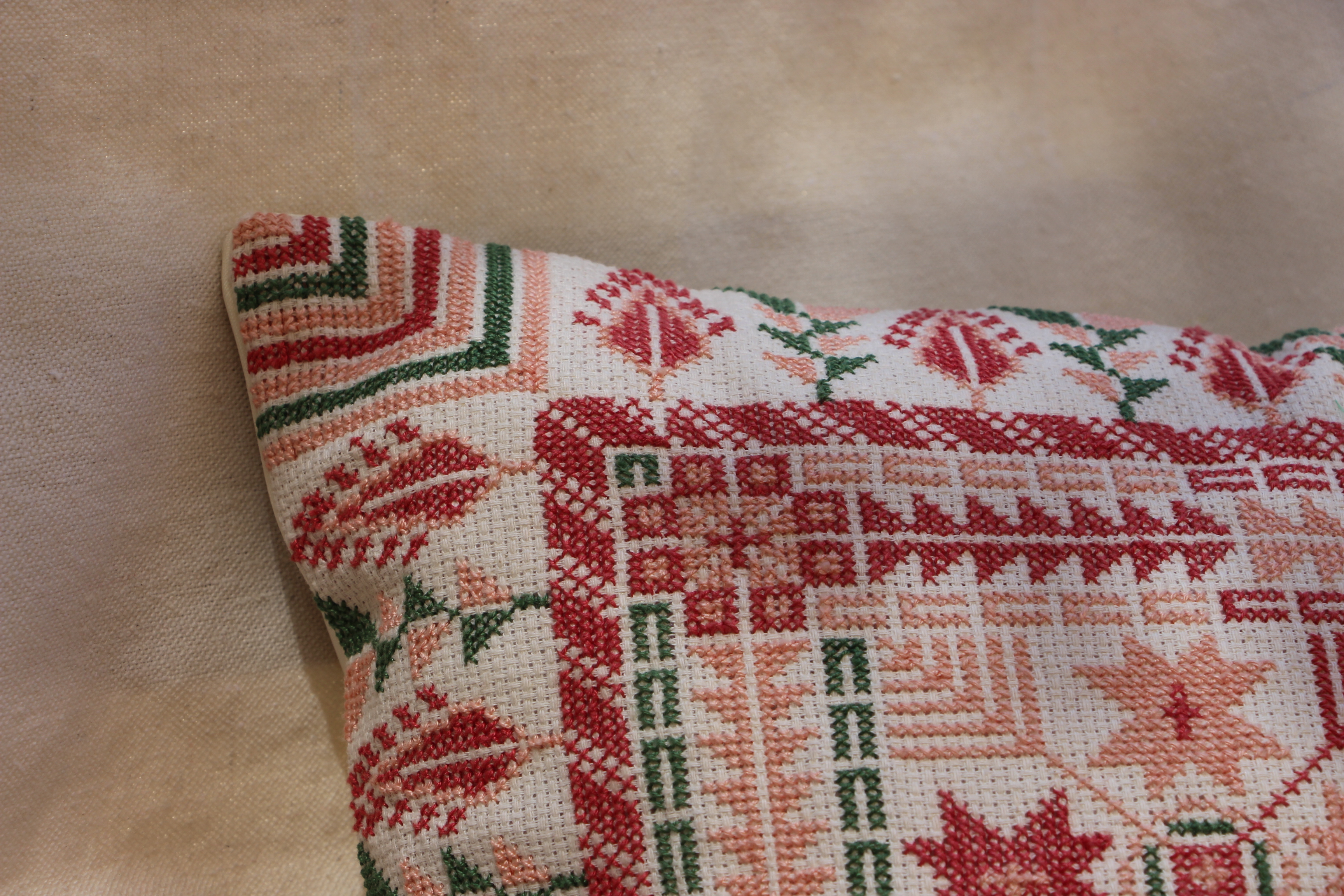 This piece blends natural colors with refined hand embroidery, making it a distinctive artistic addition that carries the spirit of Gaza and its artisans.