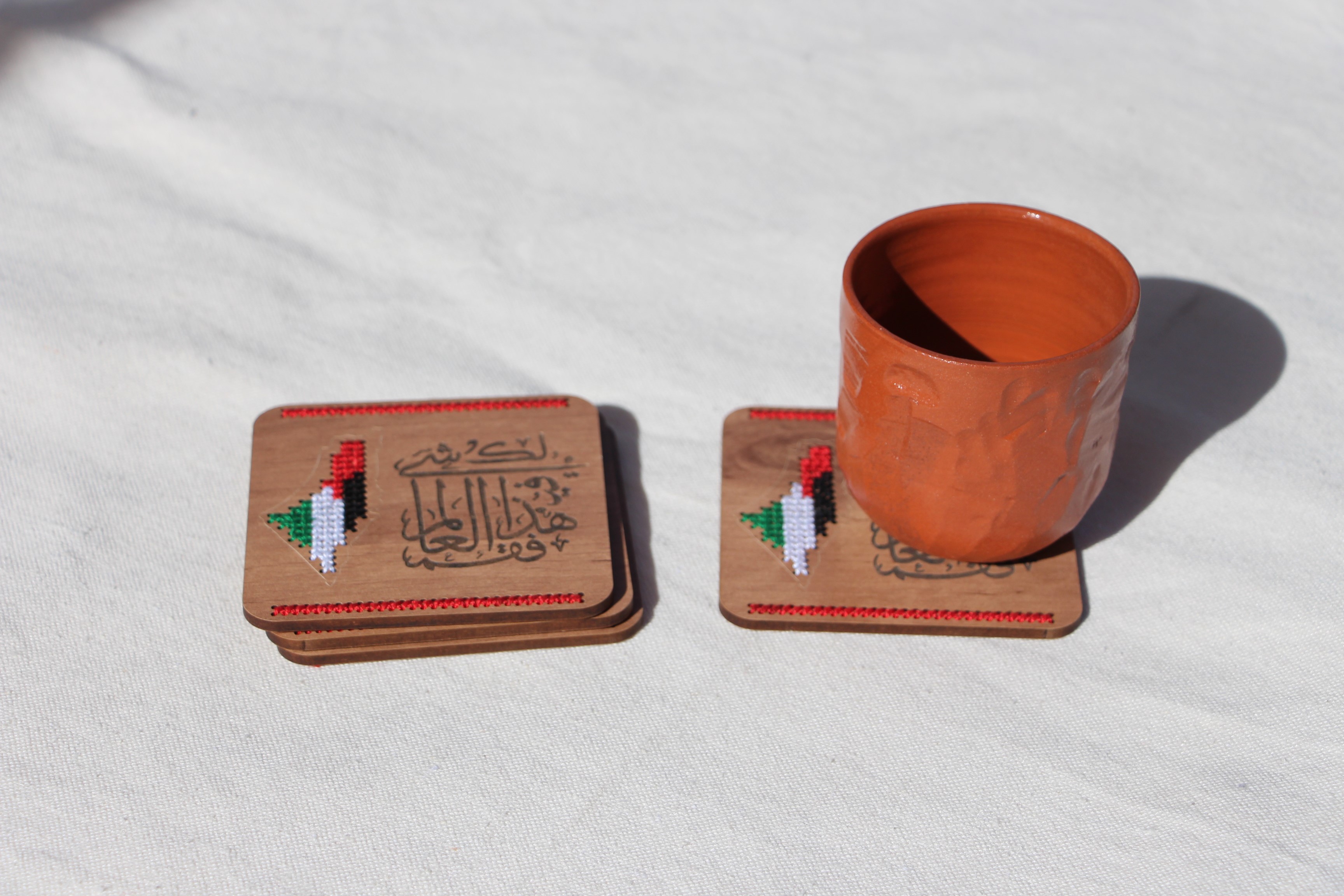The set includes 4 coasters, each designed to add warmth and elegance to your coffee table or dining area while protecting surfaces from heat and moisture. Perfect for home use or as a symbolic and thoughtful gift.