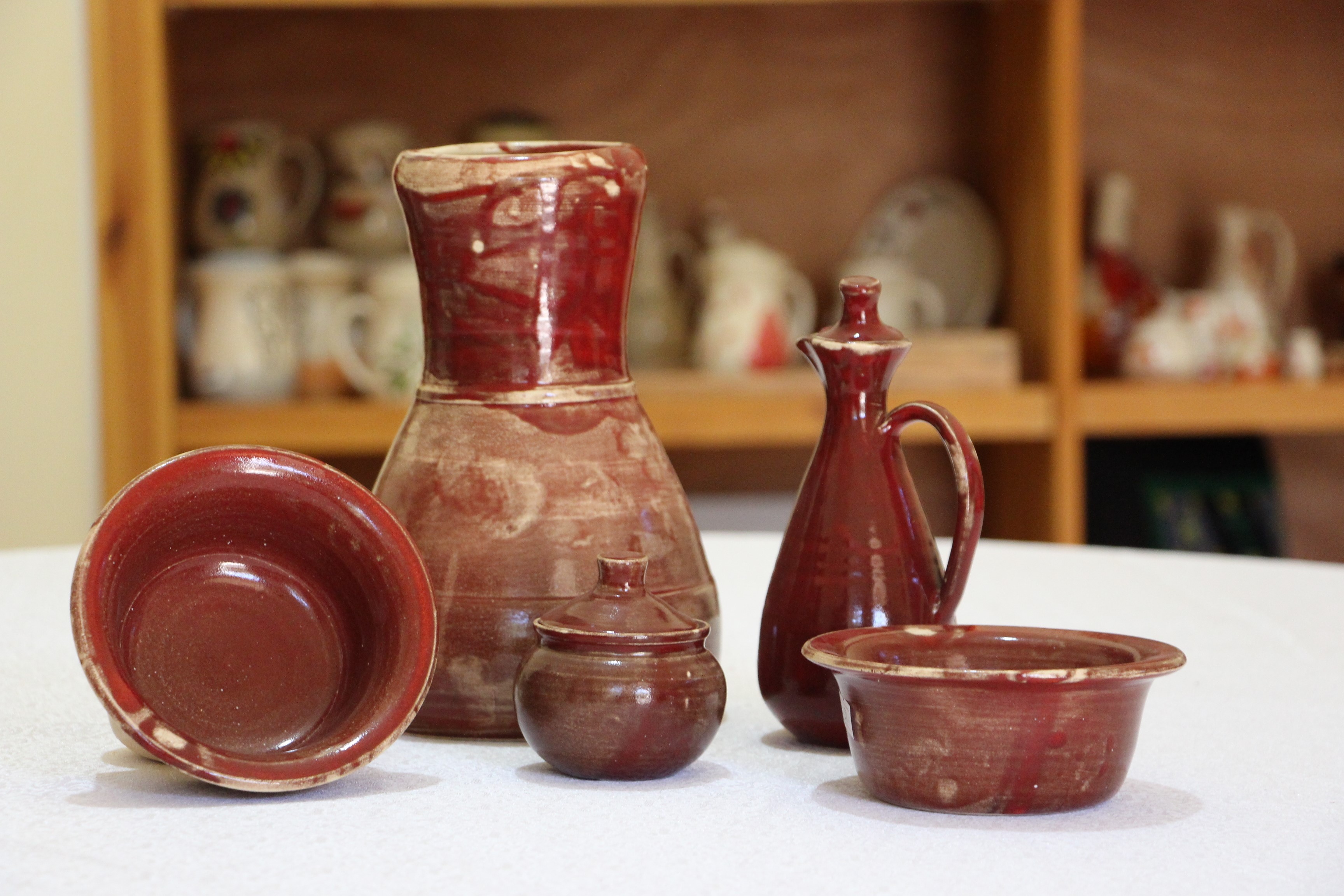 - Deep red glaze