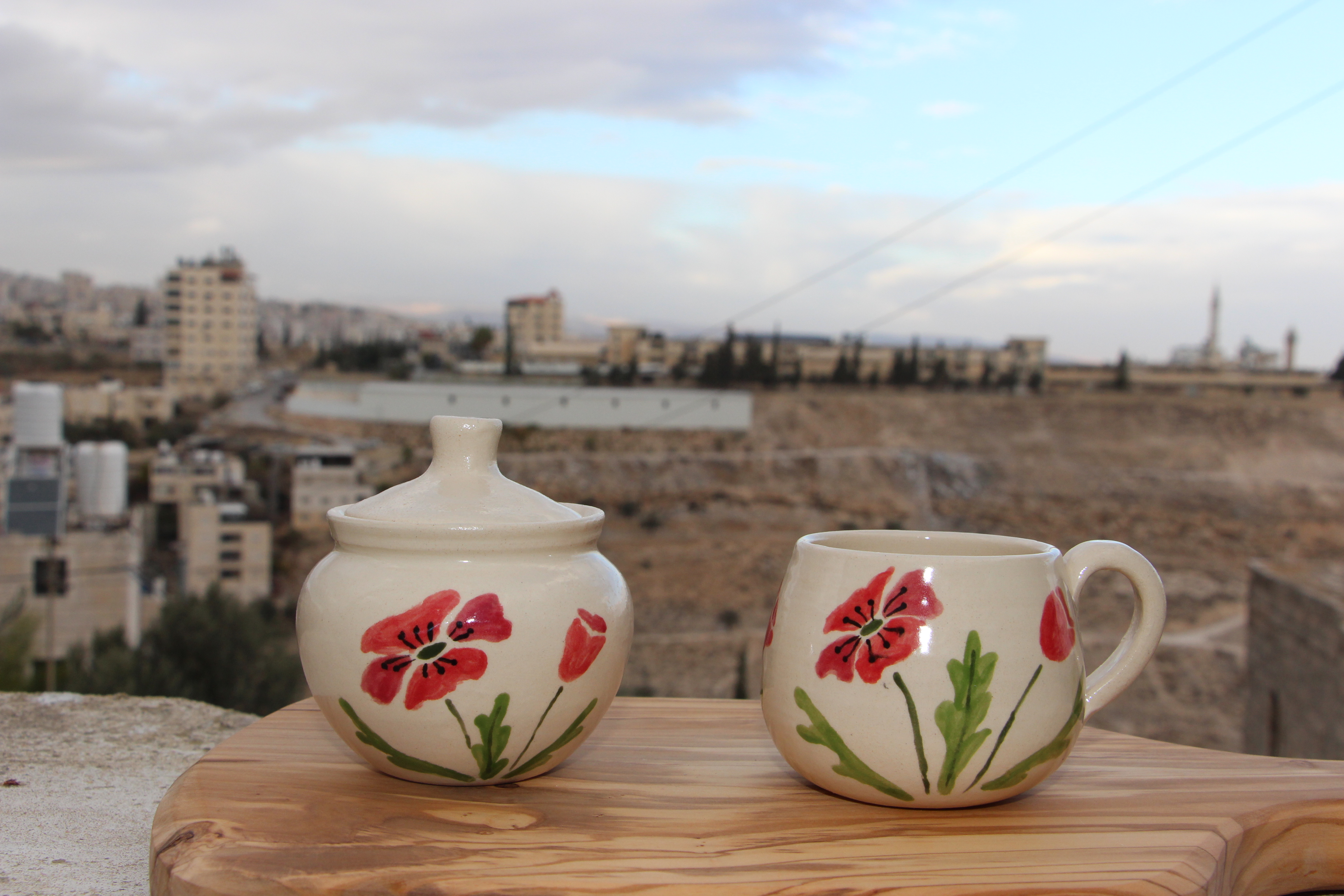 Each piece is meticulously handcrafted, showcasing the refined artistry of Palestinian ceramic craftsmanship.