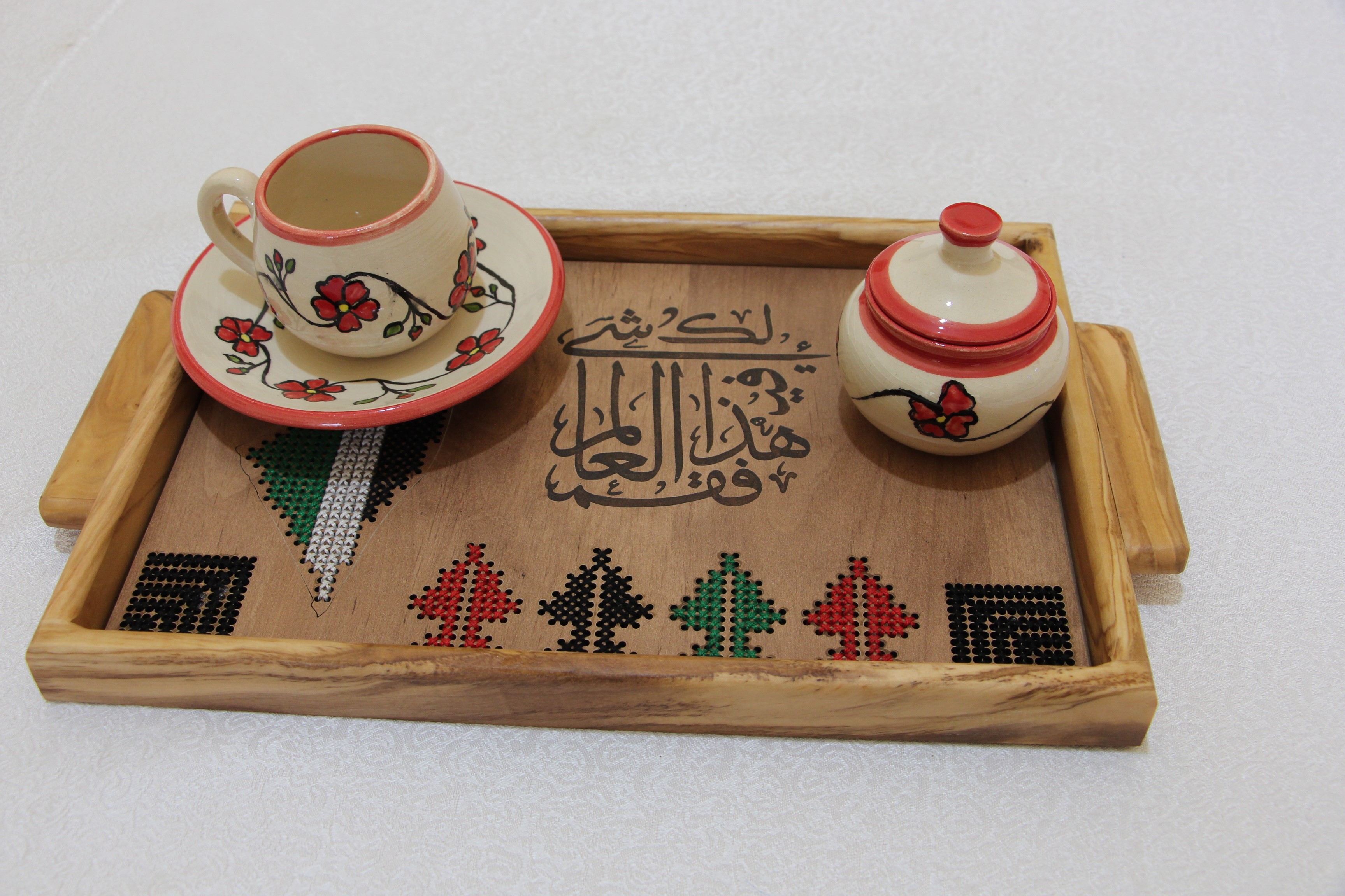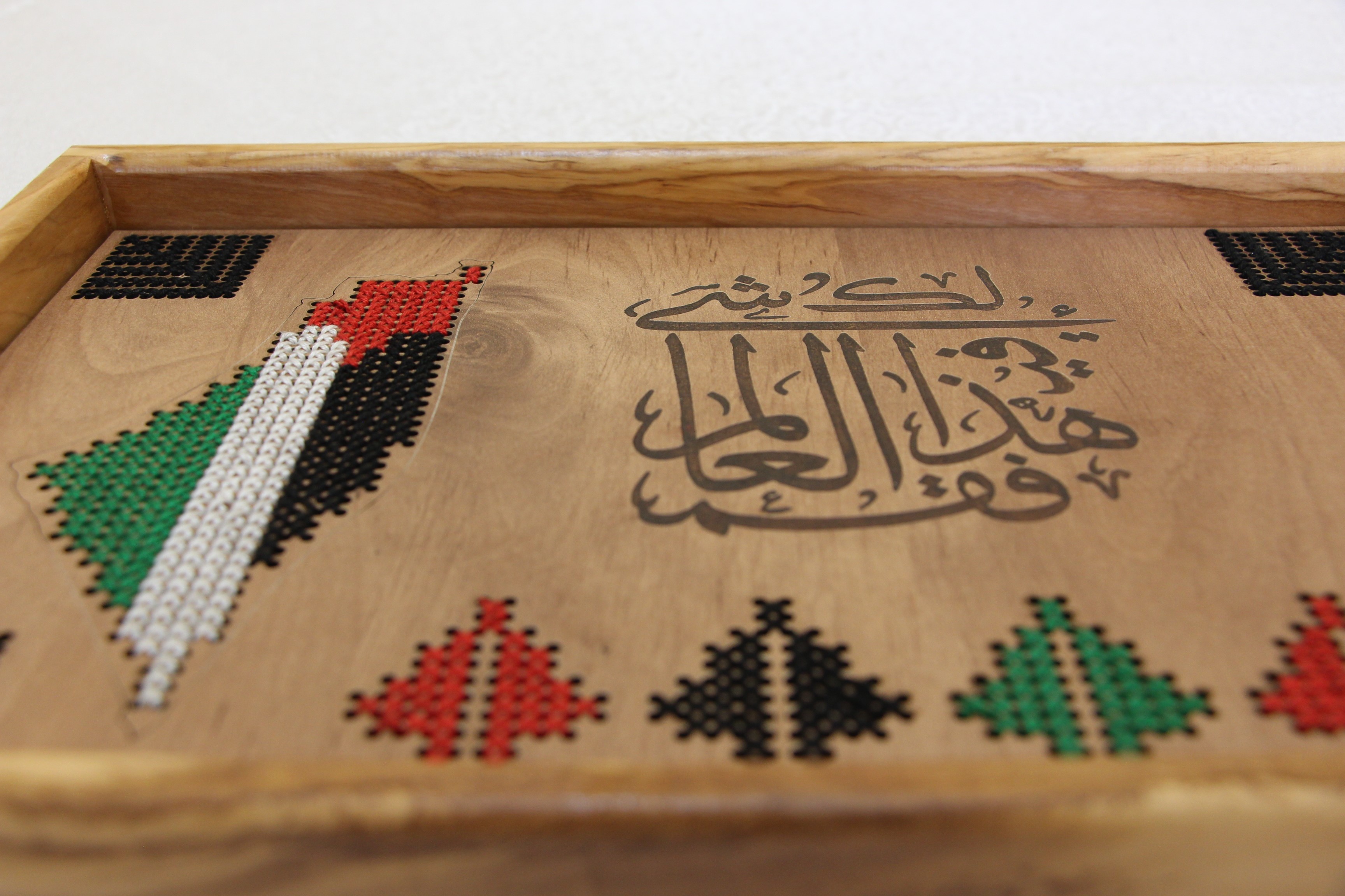 This tray is crafted with care, combining the beauty of olive wood with detailed hand embroidery. The Palestinian flag colors and map add a strong symbolic meaning, making it ideal for daily use or as a meaningful gift.