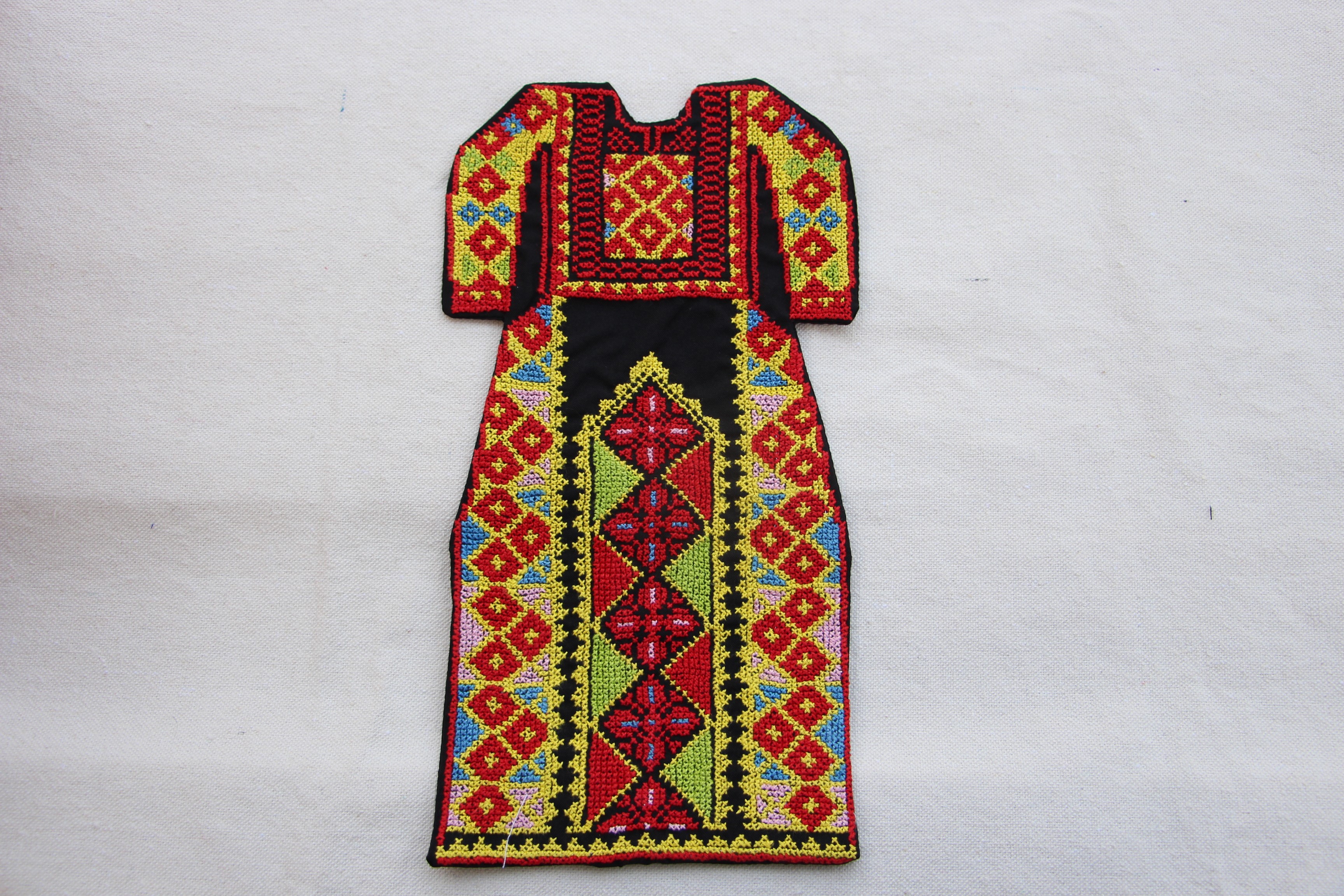 Experience art and heritage with the Mini Gaza Thobe – Handmade, adorned with Gaza’s distinctive traditional embroidery. This piece showcases Palestinian craftsmanship and the spirit of the city, with vibrant colors and intricate details.