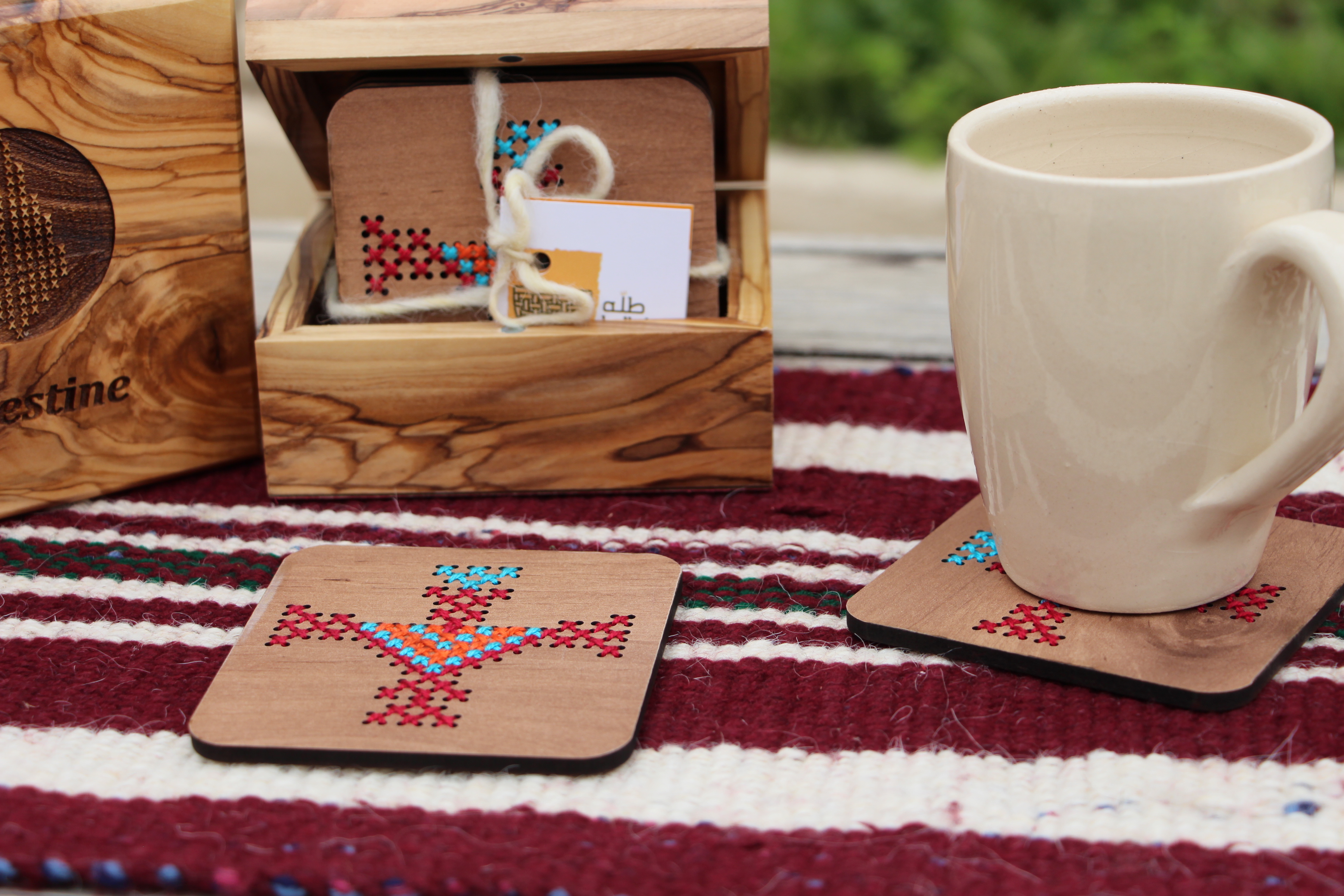 - Includes 6 coasters representing 6 Palestinian cities